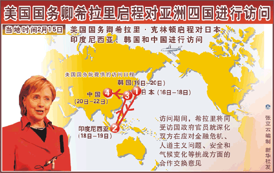 據美國《洛杉磯時報》網站14日報道,昨天,就在國務卿希拉里·克林頓為其上任后的首次海外之行做準備時,她承諾將奉行“既不沖動也不太注重意識形態的”外交政策。她此次在訪問亞洲時將面臨一系列敏感問題。