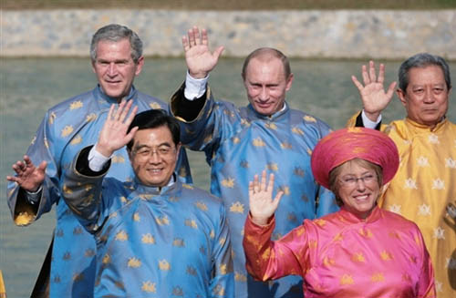 為配合布什行程,APEC一向在領(lǐng)袖會(huì)議第二天閉幕時(shí)才拍攝的領(lǐng)袖大合照,將提前一天拍攝。不過(guò),澳洲將選擇何種傳統(tǒng)服裝?至今仍是高度機(jī)密。
