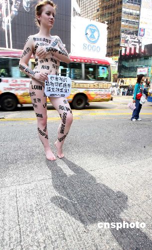 善待動物組織女郎街頭裸體抗議肉食工業(3)