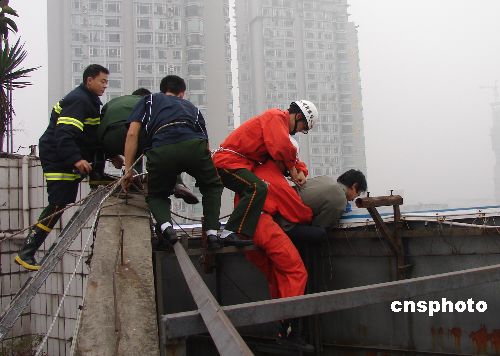 11月11日上午,在四川省內江市東興區西林大橋橋頭一七層高樓外的廣告牌上,一青年男子利用手中擴音喇叭高喊“因工作失意,欲一死了之”,很快吸引了數百名群眾。趕到現場的派出所民警和消防戰士將其成功解救。