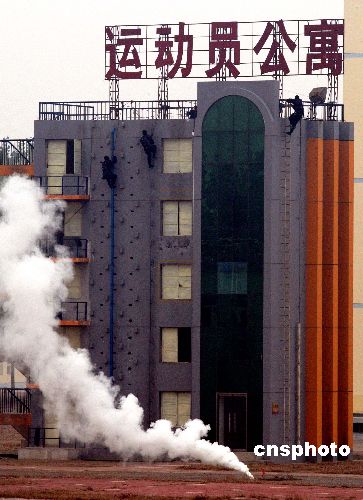中國(guó)反恐特種部隊(duì)演練解救運(yùn)動(dòng)員人質(zhì)。