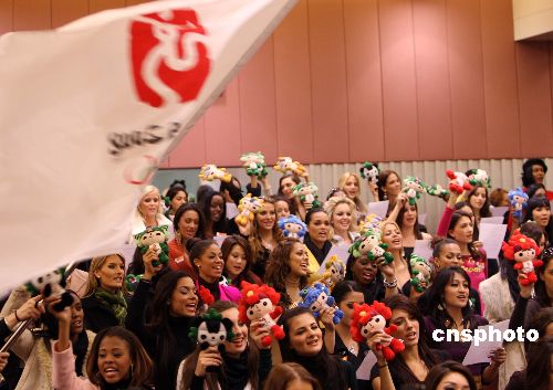 十一月十九日,來自世界一百多個國家和地區的一百零六名世界小姐在北京舉行奧運歌曲《點燃激情 傳遞夢想》英文版錄制活動。這首北京奧運圣火歌曲將在奧運歷史上成為演員國別和地區最多的一首歌。一百零六名世界佳麗現場演唱北京奧運歌曲。中新社發 任海霞 攝