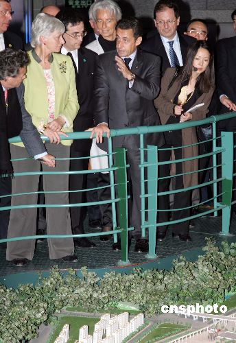 十一月二十七日下午,法國總統(tǒng)尼古拉·薩科齊到上海城市規(guī)劃館參觀,聽取上海2020年城區(qū)規(guī)劃及世博會場館規(guī)劃等情況介紹。中新社發(fā) 潘索菲 攝