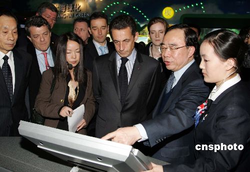 薩科齊聽取上海2020年城區(qū)規(guī)劃及世博會場館規(guī)劃情況介紹,對上海軌道交通很感興趣。