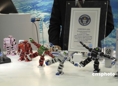 “2007國際機器人展”11月28日在日本東京國際展覽中心開幕。在為期4天的展覽中,來自世界各國和地區的199家公司、66個團體和機構將在多達1071個展區中展示最尖端的機器人技術和相關產品。中新社發 侯宇 攝