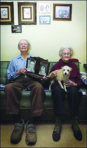 100歲的明妮·羅斯科特和99歲的梅爾文·羅斯科特夫婦是美國得克薩斯州達拉斯市人,2人從小生活在達拉斯市附近兩個鄰近的小鎮,由于經常在學校運動會上見面,二人得以相識。經過數年戀愛后,他們終于在1927年11月11日注冊結婚。由于結婚后正巧趕上大蕭條時期,梅爾文無論哪里都找不到工作,夫妻生活異常窘困。幸好,最終他還是找到了一份卡車司機的工作,勉強維持家用。
