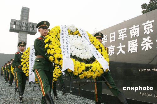 12月13日上午,南京市8000多名各界群眾代表,駐寧部隊代表,以及專程來寧的外國友好人士,在侵華日軍南京大屠殺遇難同胞紀念館集會廣場隆重舉行“悼念侵華日軍南京大屠殺30萬同胞遇難70周年暨侵華日軍南京大屠殺遇難同胞紀念館擴建工程竣工儀式”。中新社發(fā) 韓華 攝