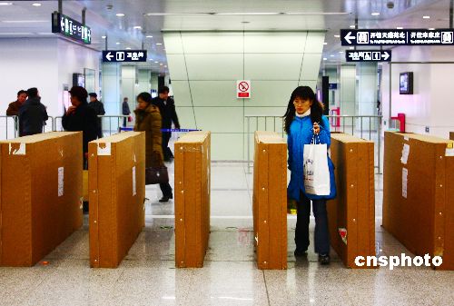 12月17日,在北京地鐵5號線天通苑站出入口處,市民正穿梭于新安裝完畢的一批電子設備中。據工作人員介紹,地鐵車站安裝的新設備是自動檢售票系統,出入口處的是閘機,其相應的配套設備還有自動售票和充值機。目前5號線全線已經陸續安裝了新的自動檢售票系統,但不會立即投入使用,還需要時間調試。屆時,北京地鐵1、2、13號線也將對原有的檢售票系統進行改造,初步預計明年3月以后,所有北京地鐵線路都要開通和使用自動檢售票系統。中新社發 鄭雄增 攝