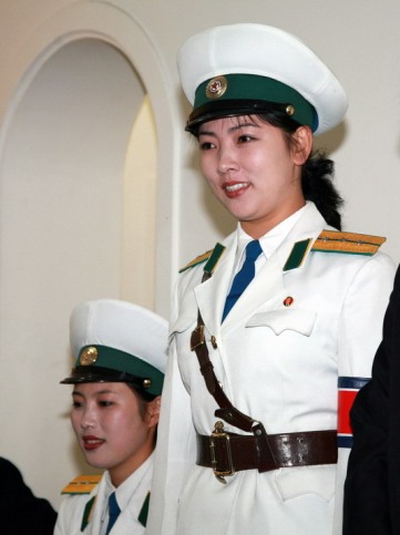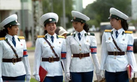 女交警是平壤一道亮麗的風景線,她們都是亭亭玉立、正值妙齡的未婚女青年,年齡從16歲到26歲不等,體貌端正、聰穎健康,身高不低于1.65米,是在眾多高中畢業生中精心挑選出來的優秀人才。她們站在十字路口中央,手拿交通指揮棒,眼睛注視著川流往來的車輛,迅速敏捷地指揮著交通,著實一幅巾幗不讓須眉的颯爽英姿,不禁令人眼前一亮。