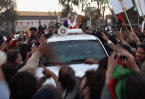 中新網(wǎng)12月28日電 綜合報(bào)道,攝影師約翰-莫爾27日拍下了巴基斯坦人民黨領(lǐng)導(dǎo)人、前巴總理貝-布托遇害前的最后一組照片,其中的一張照片顯示,貝-布托從車內(nèi)的天窗站起身來以向她的支持者揮手示意,她在這之后被兇手的子彈擊中。