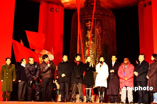 12月31日晚,“喜迎奧運 祝福北京”大型主題活動在中華世紀壇舉辦,多位全球華人熟悉的嘉賓在零點時刻為北京敲響二00八的新年鐘聲,宣告北京正式跨入奧運年。千里之外的香港時代廣場迎新年活動通過衛(wèi)星與北京連線互動,共同慶祝奧運年的到來。中新社發(fā) 鄭雄增 攝