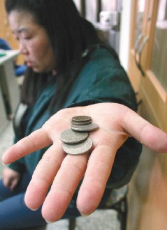 據(jù)臺(tái)灣《聯(lián)合報(bào)》報(bào)道,四十三歲的陳女昨天在警局翻遍全身口袋,僅有三十二元。“這是我全部的積蓄,要留給媽媽下一餐。”說完,陳女淚水立刻滑下。警察見狀不忍,掏腰包買面包請(qǐng)她吃,她抹淚紅著眼狼吞虎咽,似乎餓壞了。