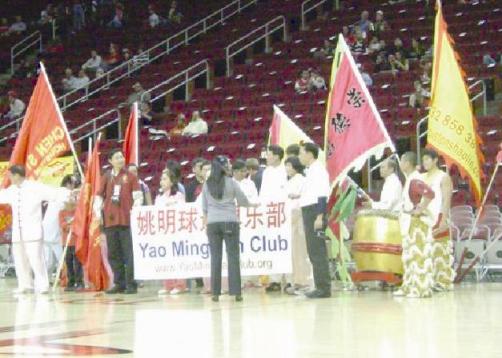 6)中國功夫走進火箭隊賽場,太極少林和秧歌為姚明助威----12月31日晚,NBA火箭隊舉行2007年最后一場比賽開始前,由休斯頓姚明球迷俱樂部等單位組織的中國功夫表演隊伍大張旗鼓地出現在豐田中心的賽場上,具有濃郁中華民族文化特色的太極、少林和秧歌到這里為火箭姚明助威來了。由黃曉明,程進才,釋行浩和喬鳳祥等率領的太極,少林和秧歌隊伍在豐田中心向美國主流社會大展中華文化之精粹。
