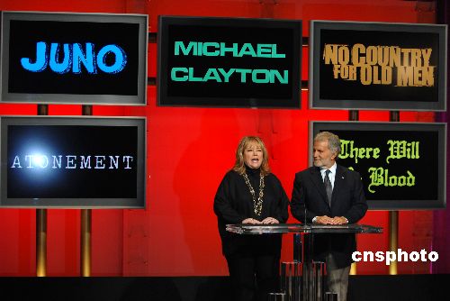 第八十屆奧斯卡金像獎提名名單二十二日拂曉如期公布,《老無所依》(又譯《險路勿近》)、《未血綢繆》(又譯《血色黑金》)、《邁克爾·克萊頓》、《朱諾》和《贖罪》入圍最佳影片。中新社發 張煒 攝