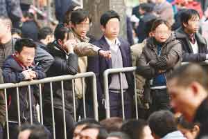票販子成群結(jié)伙趁亂插隊的現(xiàn)象引起菜園壩火車站重視。前天下午5時,站方開始讓候車的旅客全部坐在地上。警察解釋稱,之前站著很難判斷誰在插隊,一旦有人出隊列,只有將其清理出去。如果誰要上廁所等,需將身份證交給警察代為保管后,才能離開。