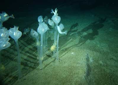 澳大利亞科學家2月19日發布的照片顯示的南極洲大陸架600米深處的珊瑚及其它生物。三艘南極科考船結束了南極海域夏季考察活動,返回澳大利亞。