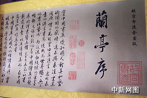 2006年11月15日,由中國故宮博物院監制的全幅長七米,寬三十五厘米的黃金珍藏版《蘭亭序》長卷在書圣王羲之曲水流觴之地-紹興蘭亭所在地正式發行。據悉,此黃金珍藏版《蘭亭序》長卷在浙江尚屬首發。