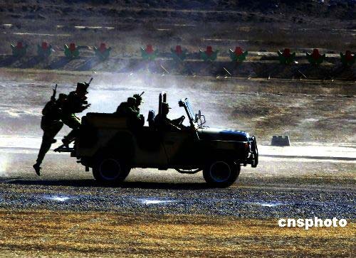 解放軍步兵旅練兵場上顯神威。