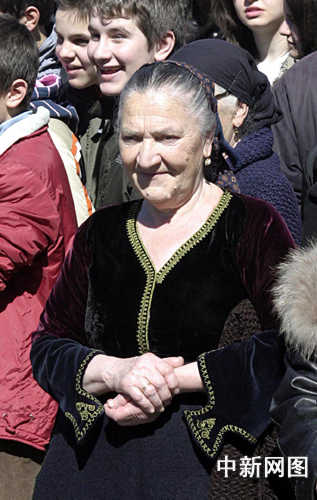 3月26日,北京奧運會圣火希臘境內傳遞第三日,抵達冰雪覆蓋的山城邁措翁。市民們身著傳統的民族服裝參加慶典。中新社記者 王歡