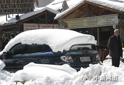 3月26日,北京奧運會圣火希臘境內傳遞第三日,抵達冰雪覆蓋的山城邁措翁。這里是希臘著名的滑雪圣地之一。中新社記者 王歡