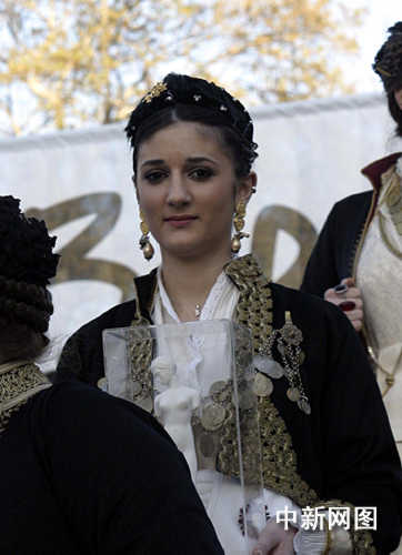 3月26日,北京奧運會圣火希臘境內傳遞第三日,抵達當天最后一個城市韋里亞。圖為慶典儀式上的禮儀小姐。中新社記者 王歡