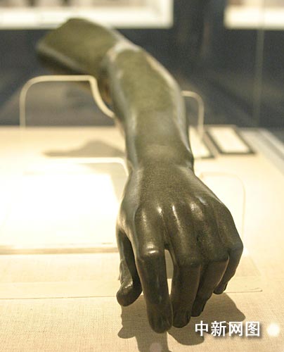 3月27日,北京奧運圣火希臘境內(nèi)傳遞第四天途徑派拉古城,博物館展出了部分發(fā)掘的歷史文物。從銅像上掉落的左手臂可以看出,當時的青銅業(yè)制作工藝高超。中新社記者:王歡
