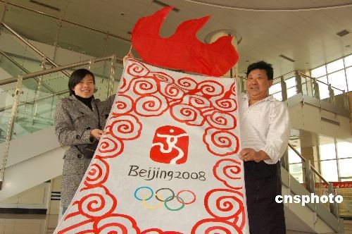 喜迎奧運圣火 “祥云火炬”風箏濰坊試飛(2)
