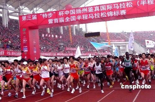 4月6日,第三屆鑒真國際馬拉松半程賽暨全國首屆半程馬拉松錦標賽在揚州拉開戰幕。來自二十多個國家和地區的一萬多名馬拉松運動員和長跑愛好者參與了此次盛會。這是中國唯一以人名命名的馬拉松賽事,以曾經東渡日本的唐朝大和尚鑒真。經過激烈的角逐,中國選手包攬了男女半程馬拉松的冠軍,本次馬拉松比賽男女前三名成績均破賽會紀錄。