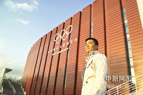 由中新社與新禾傳媒聯手精心打造的二十集電視節目《明星帶你看賽場》,邀請二十位明星以親身體驗的方式帶領電視觀眾參觀奧運場館。圖為影視明星王寶強參與電視的拍攝。