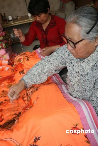 5月19日,在山東博興縣城東街道辦事處顧家村,幾名農(nóng)家婦女正在趕制新被,她們打算將縫制好的被褥,通過當(dāng)?shù)赜嘘P(guān)慈善部門捐往地震災(zāi)區(qū)。 四川省汶川縣5月12日發(fā)生8.0級地震后,災(zāi)情時刻牽動著當(dāng)?shù)剞r(nóng)民的心,他們通過看電視、聽廣播等各種方式高度關(guān)注抗震救災(zāi)進(jìn)展情況,他們踴躍向災(zāi)區(qū)捐錢、捐物,當(dāng)他們了解到災(zāi)區(qū)缺乏被褥等生活用品時,自己出錢購買回了布料、棉花絨等,趕制被褥,希望能以最快的速度送往災(zāi)區(qū),幫助災(zāi)區(qū)人民群眾早日度過難關(guān),恢復(fù)正常生活。