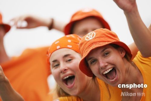 圖為激情荷蘭球迷現(xiàn)場(chǎng)助威。中新社發(fā) 武仲林 攝