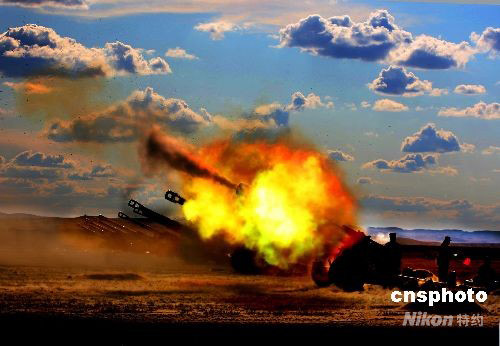 中國人民解放軍濟南軍區參加“礪兵--2008”演練的部隊,日前已經集結完畢,部隊全部進入臨戰狀態。9月12日該軍區炮兵旅進行臨戰前的實彈訓練。中新社發 宋吉河 攝