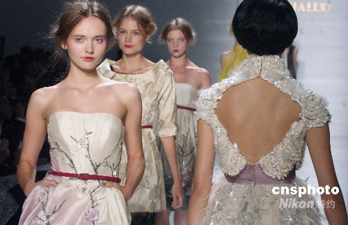 圖為世界名模參加中國女裝設計師羅崢作品展示。中新社發 錢興強 攝