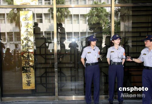 圖為一早就守候在臺(tái)北地方法院門(mén)口的女法警。中新社發(fā) 陳立宇 攝