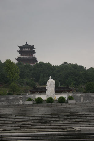 參加第二屆“網絡媒體四川行”的記者9月23日走訪了位于綿陽江油的李白故居。這里雖然經歷了“5.12”大地震的洗禮,但風光依然秀麗。圖為李白故居正門全景。