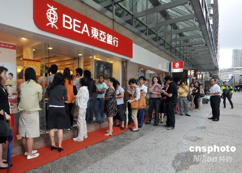 九月二十四日,大批香港市民在香港東亞銀行排隊取款。當(dāng)日下午,東亞銀行發(fā)表聲明,指市場近日有關(guān)其財政不穩(wěn)等的相關(guān)惡意謠傳,絕非事實和全無任何事實根據(jù)。