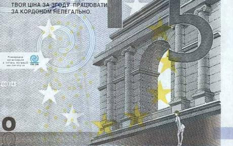 這套樣鈔分別面值5歐元、10歐元和50歐元,雖然屬于正常渠道發行,但是不能流通。與真幣的差別在于,這些鈔票的背面圖案上均添加了一個僅身著內衣的妓女形象,搔首弄姿的倚靠在歐洲一些著名的建筑物旁。樣鈔背面左上方的位置還寫有一句警示語,警告那些想通過非法途徑來歐盟國家務工的人要考慮清楚為此付出的代價。由于添加的圖案較小,隱藏在傳統歐元鈔票的圖案中,因此如果不是仔細分辨,樣鈔足以以假亂真。