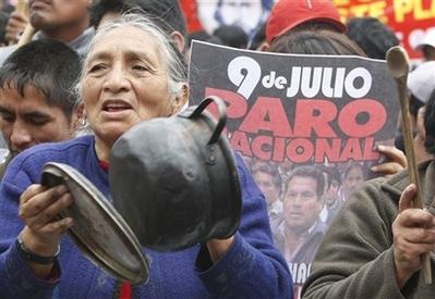 中新網(wǎng)7月10日電 當?shù)貢r間7月9日,秘魯工會發(fā)動全國大罷工,抗議物價油價飆漲,并譴責總統(tǒng)加西亞推動的自由市場政策。