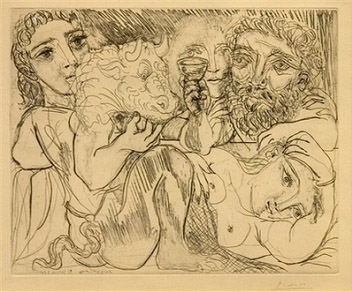 2008年8月18日,圣保羅記者招待會(huì)上展出追回的畢加索名畫《牛頭怪、酗酒者和女人》。