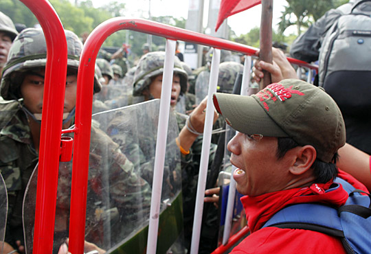 泰國反獨裁民主聯盟支持者11日包圍了總理阿披實位于首都曼谷的住所。另外,至少數百名反獨聯示威者強行沖進東盟系列峰會媒體中心。