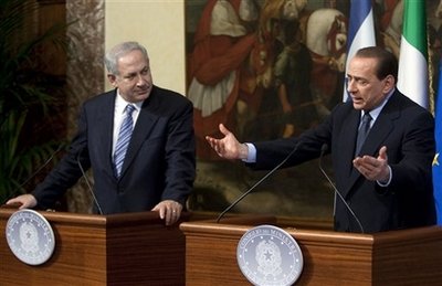 在兩位領(lǐng)導(dǎo)人召開的一場(chǎng)持續(xù)了近兩個(gè)小時(shí)的聯(lián)合記者招待會(huì)上,貝盧斯科尼表示,意方同意內(nèi)塔尼亞胡關(guān)于建立一個(gè)非軍事化的巴勒斯坦國(guó)的看法。他表示,意大利贊同“建立這樣的國(guó)家”,正如意大利認(rèn)為以色列“應(yīng)獲得阿拉伯國(guó)家的承認(rèn)”一樣。