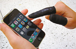 在玩iPhone時(shí),很多人確實(shí)擔(dān)心會(huì)在顯示屏上留下指痕。最后奧地利一家公司找到了解決這個(gè)問(wèn)題的辦法:用乳膠制成的手機(jī)指套罩住每根手指。由于手機(jī)指套的售價(jià)是10歐元,因此該公司認(rèn)為,一定有很多消費(fèi)者戴著粉色、白色、藍(lán)色或黑色指套在大街上走。該公司還制作了一個(gè)尺碼表,幫助消費(fèi)者確定他們的手指大小。