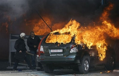 據(jù)英國(guó)廣播公司報(bào)道,大約一千名反對(duì)科索沃獨(dú)立的塞族抗議者周二(19日)沖擊亞林涅和巴尼亞兩個(gè)邊境過境點(diǎn),并縱火燒毀了邊境站的海關(guān)和警察崗?fù)ぁ?