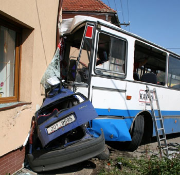 從捷克媒體刊登的事故現場圖片上可以看到,客車損壞嚴重,它還同時撞扁了停在那兒的一輛藍色轎車。