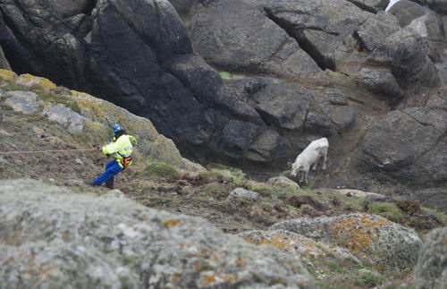 專家們稱,這頭重達半噸的牛在摔下山崖后大難不死純屬饒幸,但一個更大的難題是如何使它脫離險境。牛并不擅于爬山,它的蹄子抓地能力不強。它多次試圖跳過巖石,但都未能成功,用拖拉機牽引的方法可能使它在巖石之間變成一堆牛肉。與此同時,大海也可能吞沒它,沖往大西洋。所以弗勞爾不得不面臨花1萬英鎊雇直升機來營救這頭牛或者殺死它的兩難局面。