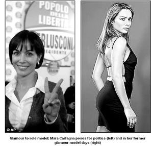 薩賓娜稱,瑪拉以前只是一名無上裝裸體模特,后轉行進入電視圈成為主持人。2006年,她被貝盧斯科尼相中,并在后者的提攜下從政。令意大利人目瞪口呆的是,2個月前,瑪拉竟被再次當選總理的老貝任命為意大利機會平等事務部長,成為老貝內閣中最年輕的成員。
