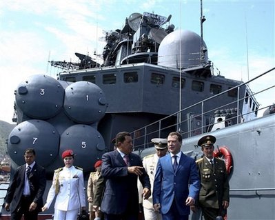 中新網(wǎng)11月28日電 俄新網(wǎng)消息,俄羅斯總統(tǒng)梅德韋杰夫和委內(nèi)瑞拉總統(tǒng)查韋斯27日參觀了俄羅斯“恰巴年科海軍上將”號大型反潛艦,該艦作為參加與委內(nèi)瑞拉海軍舉行聯(lián)合演習的艦隊成員抵達該國。