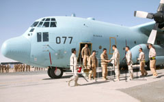 日本航空自衛隊的C130運輸機機組成員完成在伊拉克的最后一次運輸任務。攝于12日。(共同社)