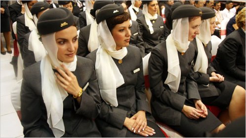 中新網12月22日電 綜合報道,隨著越來越多的阿拉伯婦女走出家門尋找工作,阿拉伯聯合航空公司開始錄用阿拉伯婦女擔任空姐。這些走出家門的女性在飛行中享受自由,也飽嘗背井離鄉的孤寂。