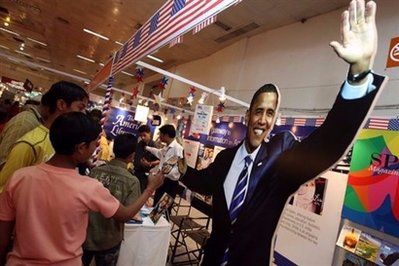新德里書店內的奧巴馬紙板